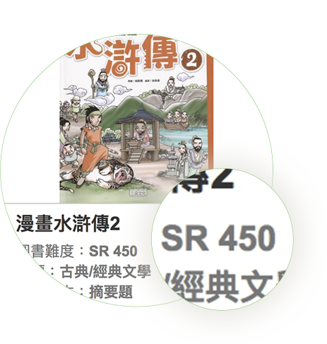 本團隊透過特殊計量的技術,將讀者的閱讀程度與書籍難度進行整合,建立完整且客觀的閱讀能力與文本難度參照標準。讀者可運用「中文閱讀能力適性診斷評量(DACC)」精準診斷個人閱讀能力,並依據測驗的閱讀能力,選擇合適的SR值書籍進行適性閱讀,提升閱讀動機與學習興趣。