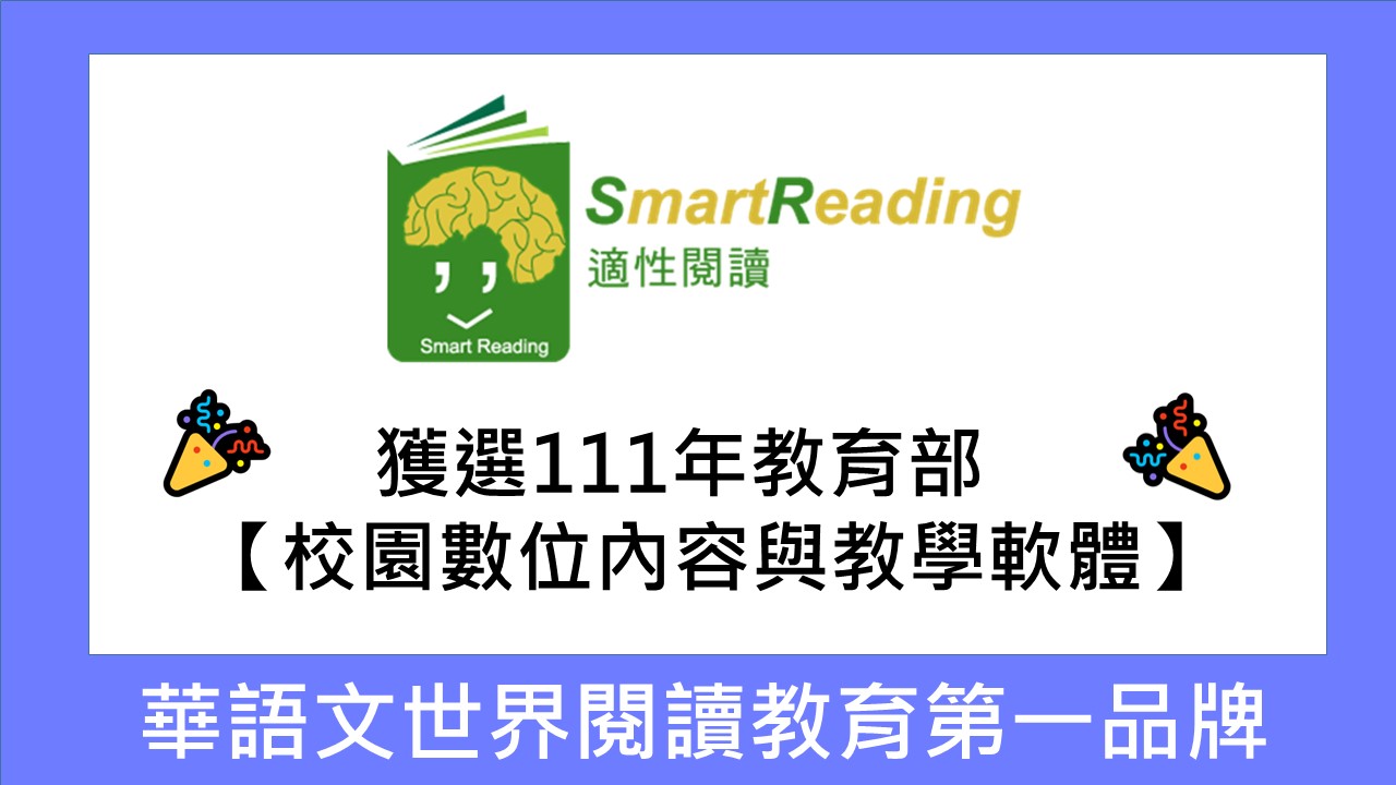 恭喜SmartReading適性閱讀獲選111年教育部 『校園數位內容與教學軟體』