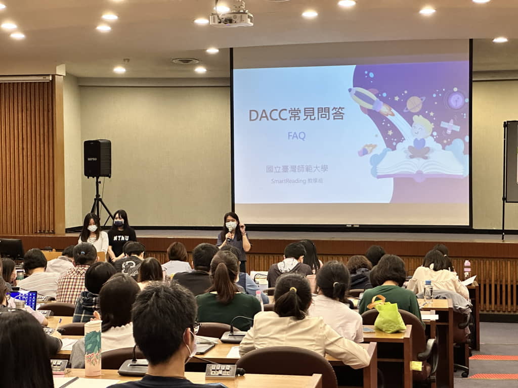 講座邀請臺師大華語文教學系洪嘉馡教授及李奕璇研究員分享「DACC前測成果與說明」講解學生的閱讀檢測成果,幫助教師依照學生程度的差異化,給予適性教學引導,協助每個學生在閱讀與理解能力上逐漸進步。