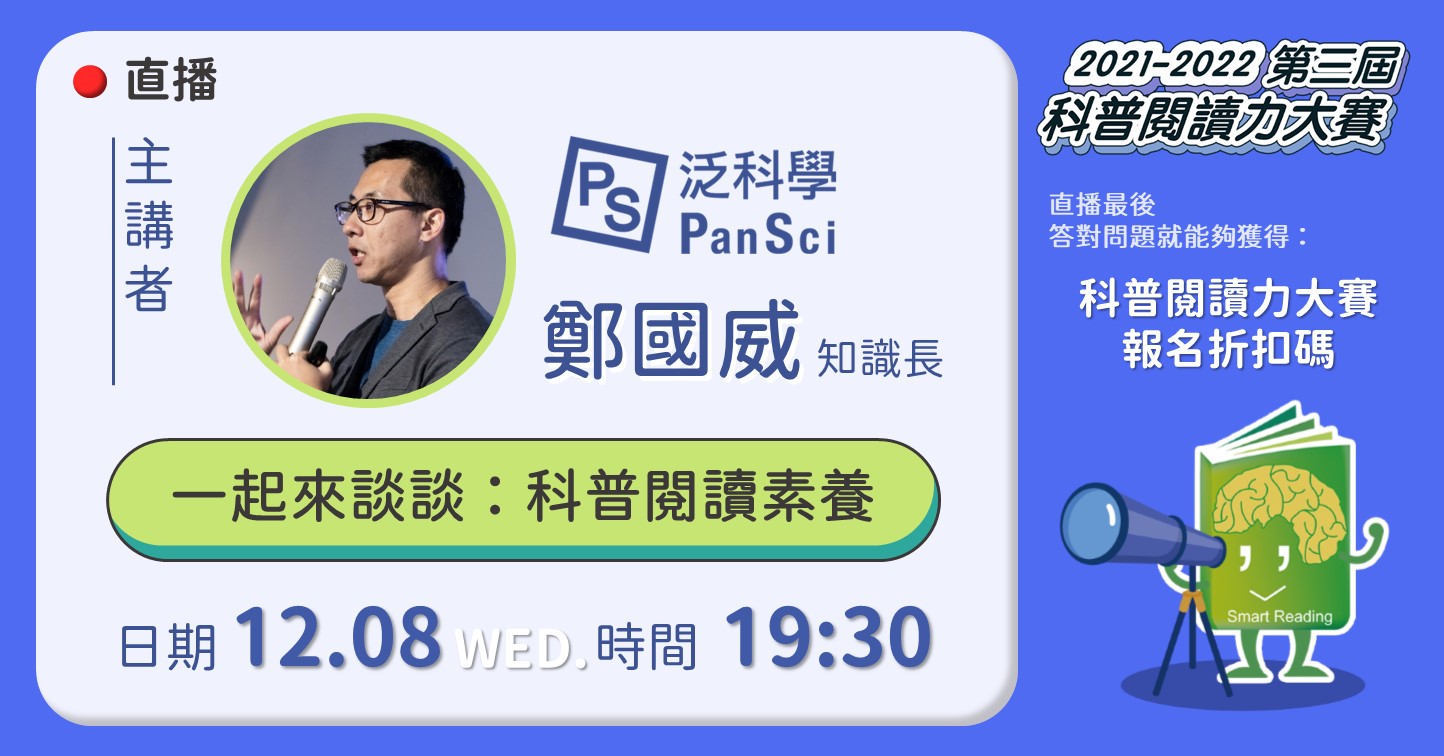 【講座】《與 PanSci泛科學知識長鄭國威一起來談談:科普閱讀素養》