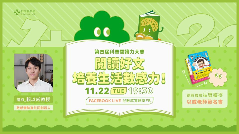 【講座】《數感實驗室 賴以威教授談 閱讀好文 培養生活數感力》