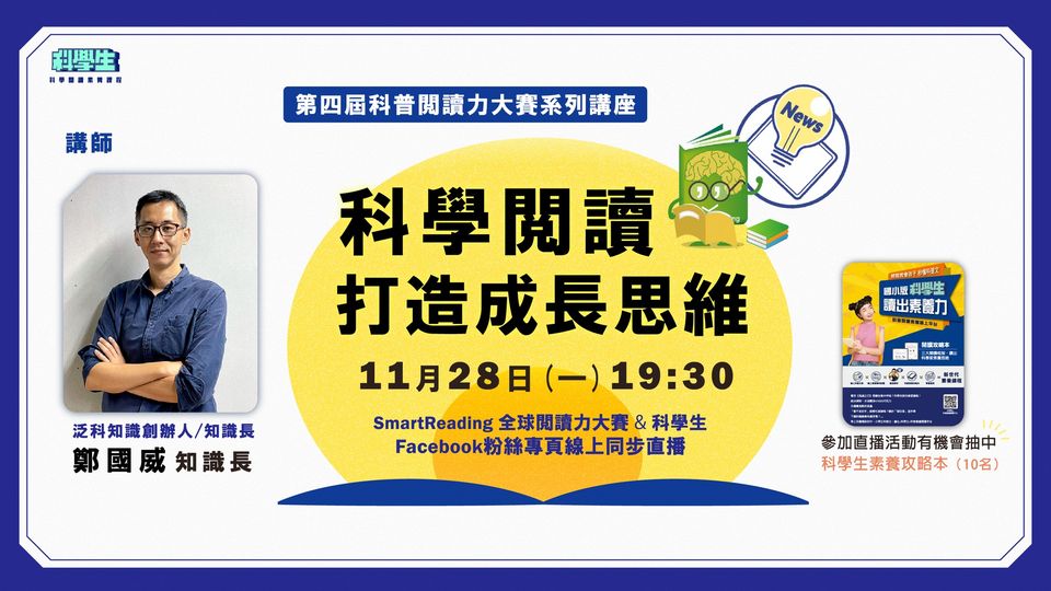 【講座】《泛科知識 共同創辦人 鄭國威談 科學閱讀 打造成長思維》