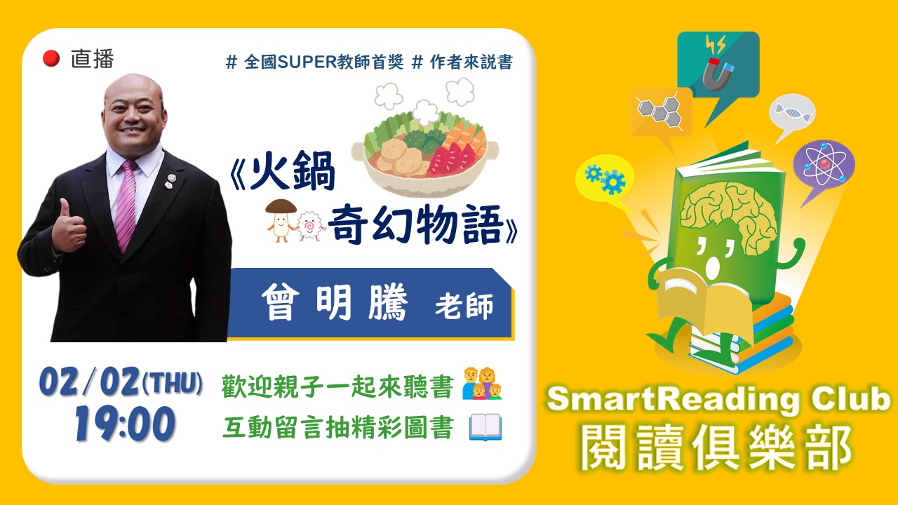 2023年#SmartReading適性閱讀 推出新節目囉【SmartReading Club閱讀俱樂部】第一集邀請到榮獲SUPER教師獎全國首獎、現任台中市爽文國中#曾明騰老師 來為大家帶讀他的著作《火鍋奇幻物語》。透過老師幽默有趣的講解,藉著冬天必吃的火鍋主題一起學習科學知識...