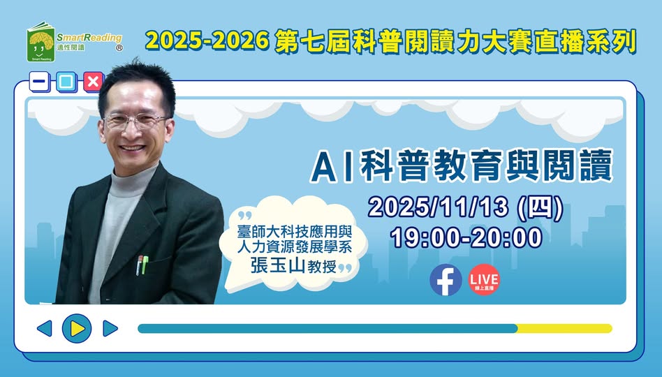 【講座】臺師大張玉山教授-AI科普教育與閱讀